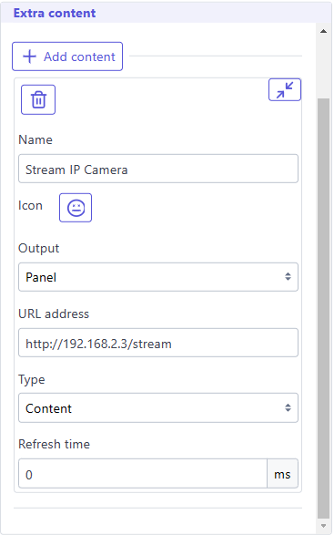 * If your camera has a web page to display streaming output, use these settings, using address corresponding tou your camera.