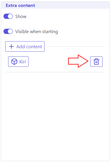 To remove an extra content, click on the "Trash" button next to the extra content you wish to delete.