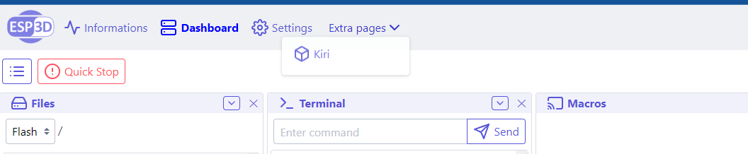 Select the types of Extra Content The ESP3D-WebUI supports four main types of extra content: