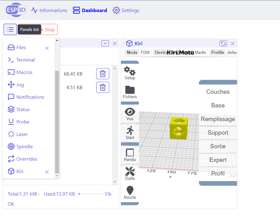 - The setup extra content interface can be accessed through a dedicated "Extra content" panel within the tab Settings/Interface of ESP3D-WebUI.