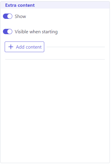 - To add a new extra content, click the "Add content" button in the extra content panel interface. It will create a new extra content with default settings.
