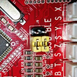 Prepare the printer’s motherboard. It requires a simple modification, that does not interfere with it’s operation afterwards – just solder 3 pin x 2 row male header on J8, and add 2 jumpers (or jumper wires) as shown on the picture: