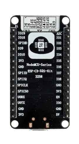 ESP32-C3 (single-core) with 2MB flash memory, ceramic antenna, rgb led
