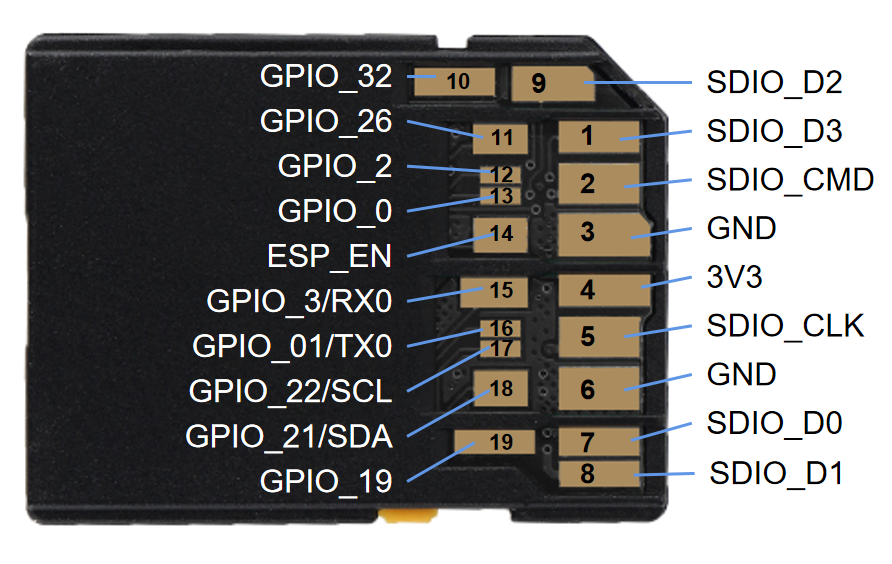 - ESP32-PICO with 4MB flash memory, ceramic antenna, SD Card with no serial header, the sharing of SD card between ESP and printer/CNC is done by a multiplexer which make sharing reliable without risk of conflict, only one device can access to SD at once.