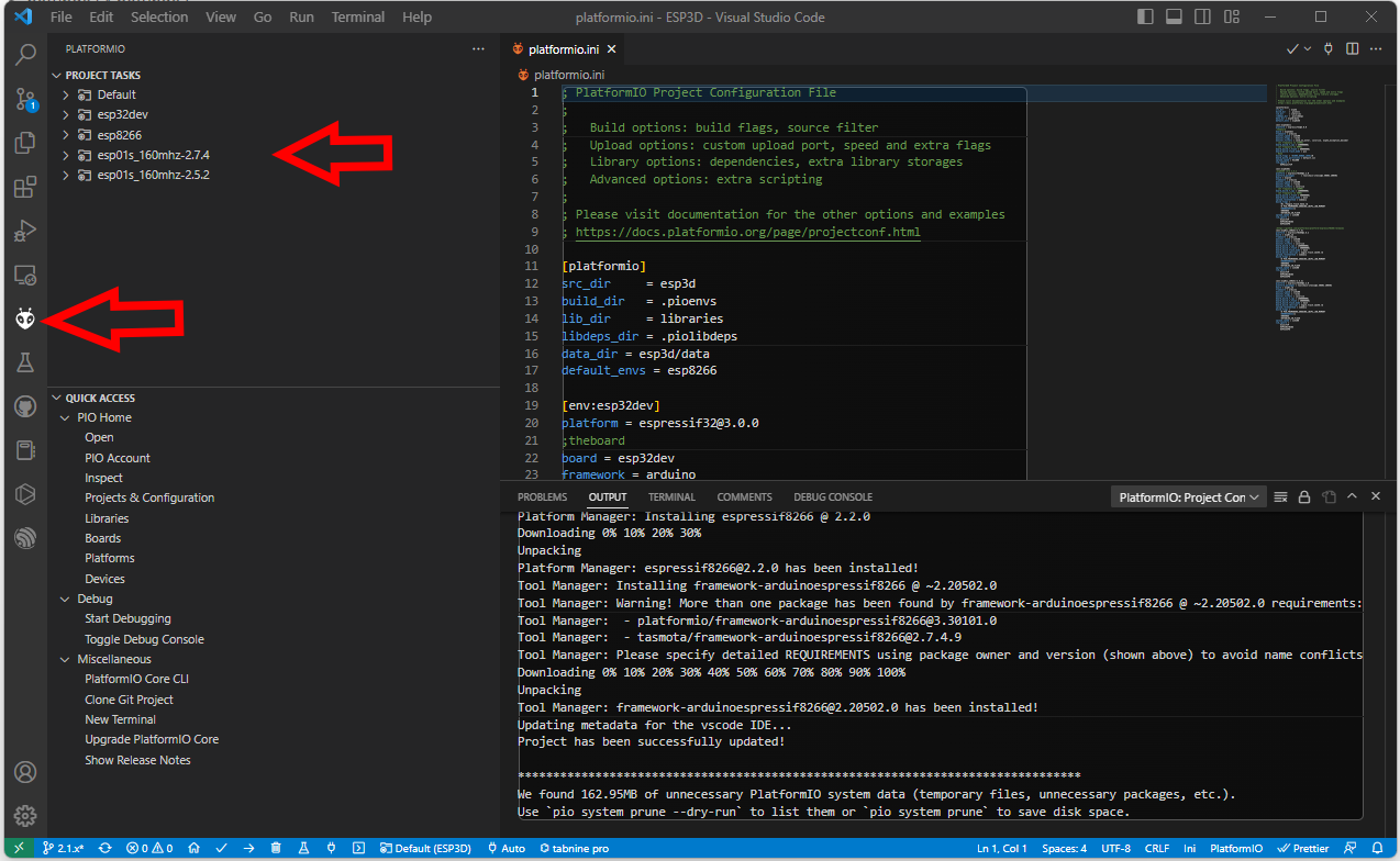 - [env:esp8266] for ESP8266 boards with 4MB flash