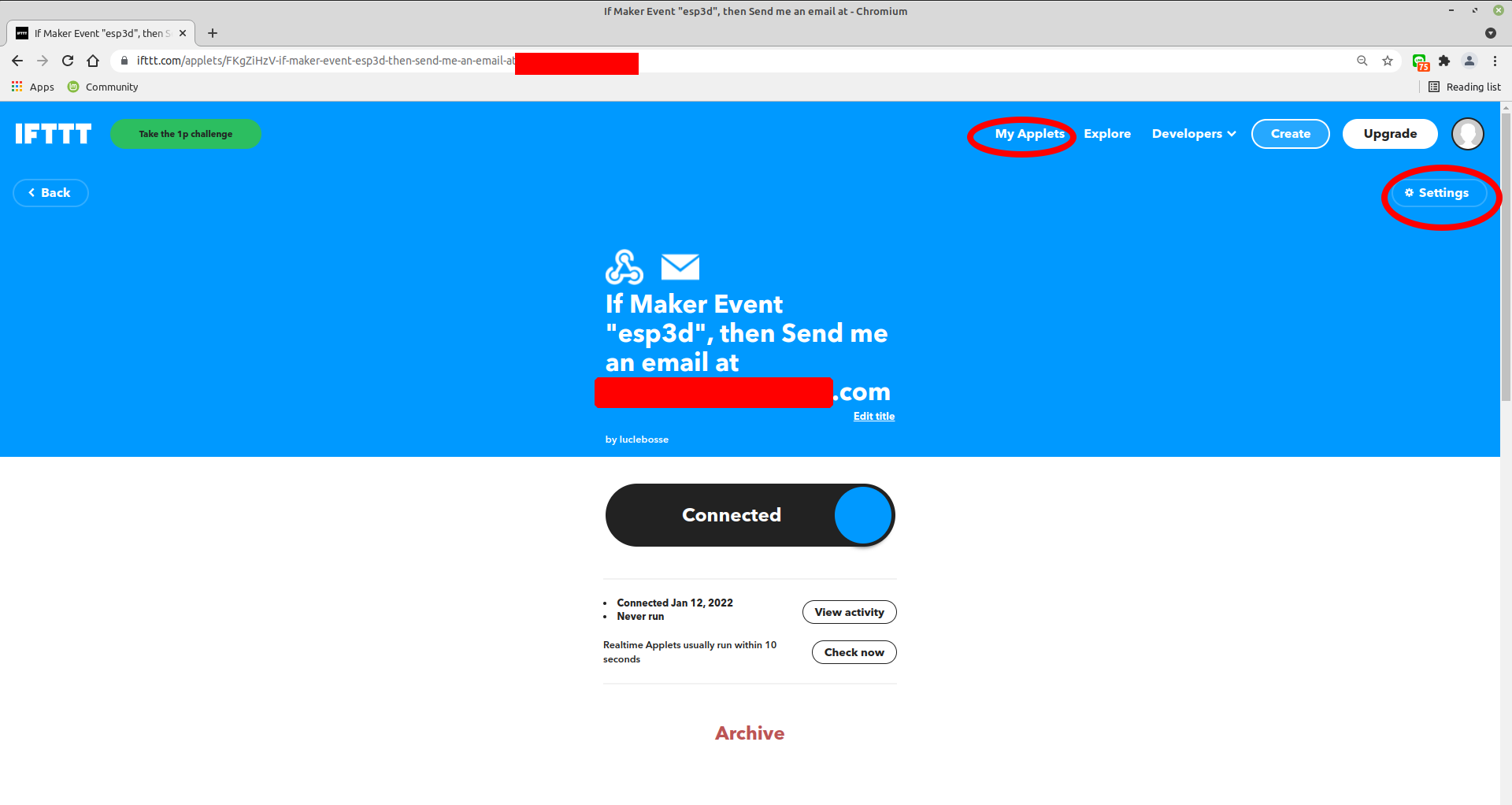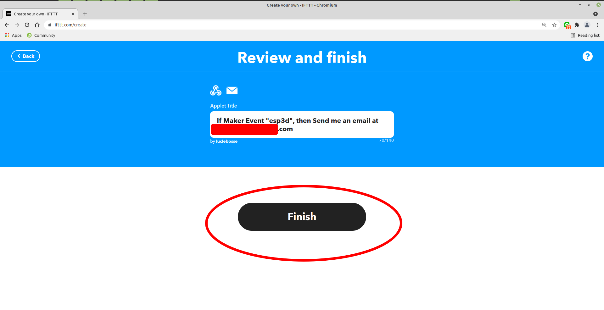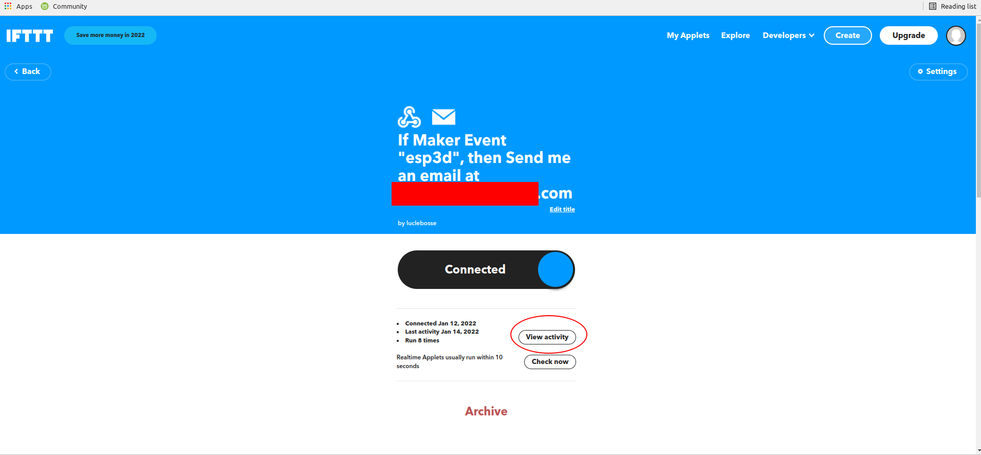 4 - Save the generate token and chatID in ESP3D, and set IFTTT as notification supplier